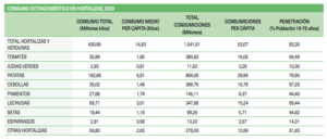 La demanda de hortalizas se mantuvo estable en 2023, consolidando los niveles de años anteriores.
