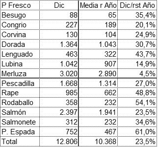 En conjunto, se puede decir que la llegada de diciembre significa un impulso para la venta de pescado fresco focalizado en estas especies de un 25-30% sobre el resto del año.