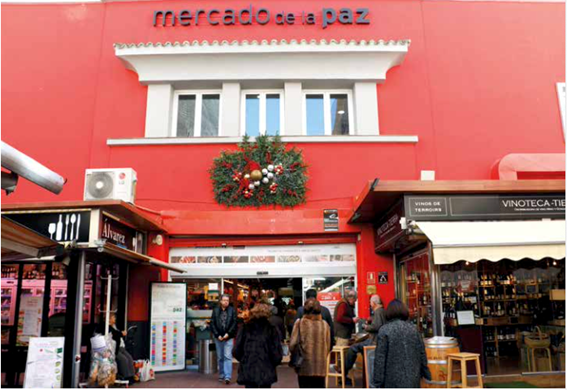 Seguimos leyendo el artículo de 2011, y nos fijamos en otro párrafo que apela a la compra integral en el mismo espacio del mercado: “Es deseo fundamental expresado por la población del barrio y recogido en sendos estudios de mercado, la posibilidad de realizar una compra integral y acceder a toda una serie de servicios alternativos dentro del propio recinto del mercado. La gerencia atiende este deseo, que se ha ido traduciendo en la incorporación de una oferta comercial y de servicios más diversificada. (…) Como puede verse en la página web del mercado (https:// www.mercadodelapaz.com/locales/ ), se incorporan servicios complementarios a la alimentación: dos restaurantes, etc. (…)”.
