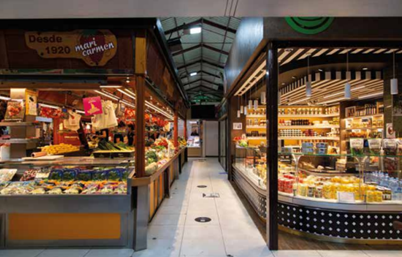 Por otra parte, el mercado se ha apoyado en la oferta de restauración que integra, para expandir la cocina de mercado en la carta de estos restaurantes. También se ha establecido una acción win-win de apoyo mutuo con algunos de los puestos de alimentación, que permite comprar el producto fresco para que sea cocinado en los fogones expertos de estos restaurantes. Cuando uno se pasea por el mercado, tanto en su parte cubierta como exterior, se siente esta continuidad armónica entre comercio de alimentación y restauración. Juega a favor la organización de los espacios, que a modo de patios permiten integrar mesas para restauración entre los comercios, sin obstaculizar en ningún caso el cómodo deambular y la actividad de compra en los comercios de alimentación fresca. En el equilibrio necesario entre ambas actividades, el mercado de la Paz tiene claro que su marca de identidad, su branding es y pretende seguir siendo, un mercado de alimentación fresca, diversa y de calidad.