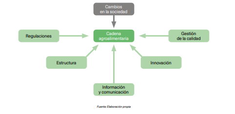 Los cambios sociales alteran la demanda alimentaria y, como respuesta, la gestión e innovación tratan de adaptarse a los cambios. Innovaciones como el Blockchain o la Inteligencia Artificial deben incorporarse en las agendas de ciertas actividades. (www. quantion.com/es/la-tecnologia-blockchain-en-la-industria-alimentaria-trazabilidad-y-seguridad). La información marca los horizontes de comportamiento especialmente en los consumidores. Finalmente, la propia estructura de la cadena y las regulaciones existentes modelan su comportamiento.