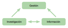 De interés en esta área es la interacción entre los grupos de investigación, gestión e información (Figura 3)