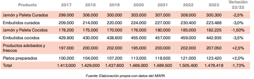 CUADRO 2. Producción de elaborados cárnicos en España (toneladas)