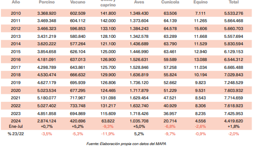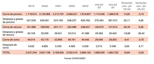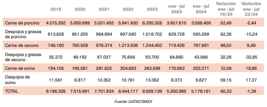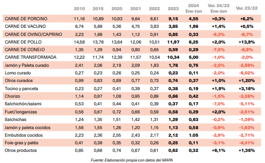 CUADRO 7. Datos básicos del sector cárnico en el primer semestre de 2024