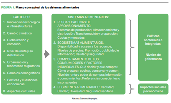 En este sentido, siguiendo a Parsons, Hawkes y Welss (2019) entendemos por sistema alimentario al conjunto formado por: a) la cadena de actividades que va desde la provisión de inputs al productor hasta el consumidor; b) los factores que influyen en la cadena de actividades y que son influenciados por ellas; c) las entidades, instituciones y personas directa e indirectamente relacionadas; y d) las conexiones entre todos estos elementos.