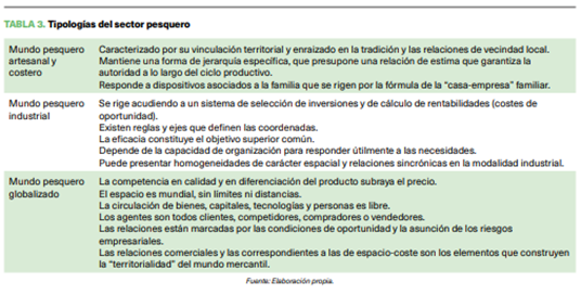 El sector pesquero tiene como objetivo valorizar su producción y obtener productos con signos inequívocos de calidad. Todas sus actuaciones están en un continuo proceso de adaptabilidad a nuevos contextos (Anderson et al.,2018). Entre las características del sector pesquero resaltamos su heterogeneidad; su especificidad técnica y territorial; y sus intensos cambios estructurales. La disparidad de los lugares de pesca y la dificultad de las condiciones de acceso a los recursos, los distintos grados de especialización técnica ateniéndonos a los artes y modos de producción y a los procesos tecnológicos; la amplia diversidad productiva en lo tocante a las especies capturadas, permiten apuntar que el creciente “grado de especialización” impulsa a corto plazo a nuevas recomposiciones y delimita nuevas estrategias empresariales y de grupo, ya sea de tipo organizativo ya sea de tipo funcionamiento (Smith & Basurto, 2019; Martin-Palmero & González-Laxe, 2021).