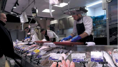 Este es un ejemplo, real, cierto, tangible, del potencial de la industria alimentaria y gastronómica que guarda el Mercado del Conde Luna. El vicepresidente de la Asociación de Comerciantes es un joven profesional, pescadero y tercera generación de una de las pescaderías más representativas del mercado y de la ciudad de León. El puesto se llena, sobre todo los sábados, de vecinos y jóvenes familias que buscan calidad y salud para sus hijos; también socializarles en la cultura de interacción personal propia del mercado.