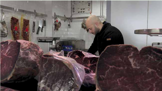 La media generacional del mercado es segunda y tercera generación; por ejemplo, el presidente de la Asociación, joven que media los treinta años y que regenta una de las carnicerías del mercado junto a su padre. La carnicería está especializada en lechazo, y representan a comerciantes que conocen y compran su materia prima en las comarcas leonesas, en este caso, desde el matadero municipal de León. Su conocimiento y calidad de las carnes es soberbio, la profesionalidad de sus manos garantiza el corte preciso que requieren este tipo de carnes.