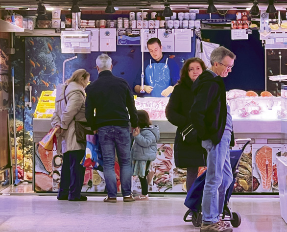 Todos ellas son exponentes de la cadena de producción que conecta a los pequeños productores con Mercamadrid como centro de distribución, hasta llegar a los mercados municipales y pequeños comercios autónomos de barrio. Las pescaderías del mercado marcan el ritmo a partir del martes, son cuatro pescaderías que ofertan calidades asequibles para distintos bolsillos. El factor diferencial de su competitividad es la profesionalidad. El conocimiento de las diferentes formas de preparación de su amplia oferta.