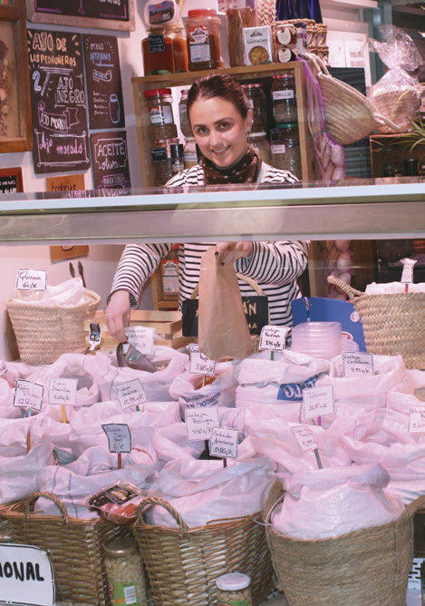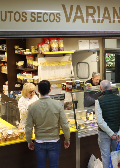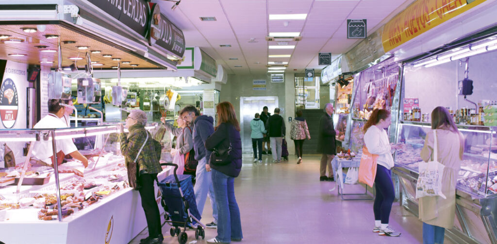Si les soy sincero, lo importante no es la fachada, porque lo que reluce en este mercado son, como suele suceder, la calidad y profesionalidad de sus comerciantes. Algunos de ellos son las y los descendientes de aquellos primeros fundadores del año 1958. En la actualidad llegan a la veintena, distribuidos en los gremios de alimentación fresca clásicos: fruterías, carnicerías, pescaderías, pollerías, charcuterías y tiendas diversas.