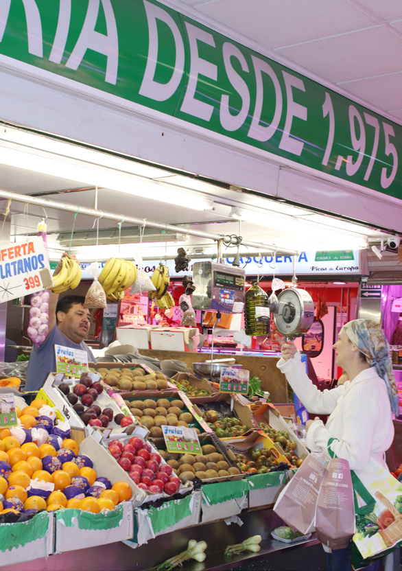 Vamos a encontrar fruteros que abrieron su puesto con el nacimiento mismo del mercado. Conocen a la perfección el barrio y a su clientela. Saben que la calidad es el valor fundamental que sigue llevando a sus clientes hasta ellos. Algunas de las fruterías, de gran tamaño, ha jugado la baza de la variedad y oferta extensa de los productos con unas calidades medias y precios asequibles. Otras han jugado la carta de la calidad, con una variedad de oferta menor y precios algo mayores, pero garantizando sabores exquisitos de sus frutas y verduras de temporada.