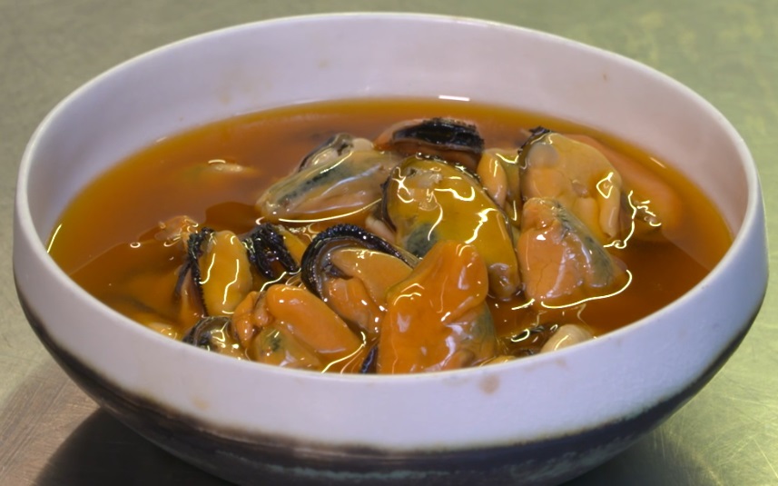 Mejillones en escabeche de cítricos con sopa vegetal, la propuesta de Lucia Freitas para la receta de Mercagalicia