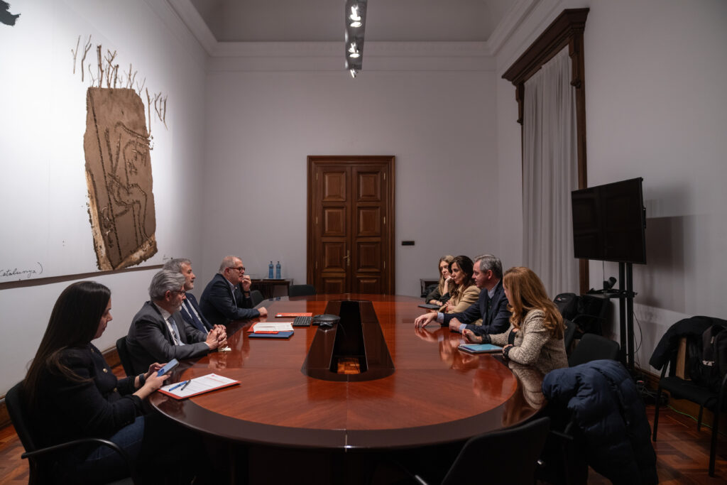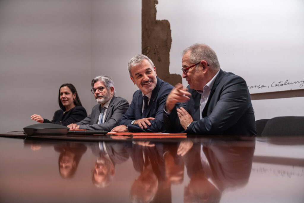 El alcalde de Barcelona, Jaume Collboni, y el presidente de Mercasa, José Miñones, mantuvieron una reunión institucional en el Ayuntamiento de Barcelona junto a sus respectivos equipos en la que abordaron nuevas líneas de impulso estratégico para Mercabarna, que actualmente acoge a 670 empresas en sus instalaciones, con más de un millón de toneladas de producto fresco comercializadas cada año.