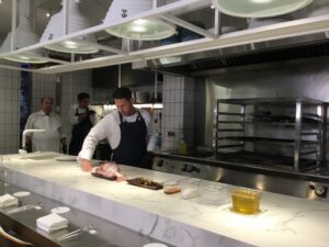 Urta con alcachofas y emulsión de sus espinas