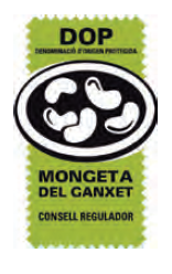 CARACTERÍSTICAS: La DOP protege la judía (Phaseolus vulgaris L.) del tipo variedad "Ganxet", comercializada como legumbre seca, cocinada y en conserva. Presenta un grano blanco, ligeramente brillante, aplanado y fuertemente arriñonada, con un peso medio de 50 g por cada 100 semillas. Presenta una humedad inferior al 15% y un contenido de proteína en semilla y de ácidos urónicos en la piel superiores a otras judías similares.