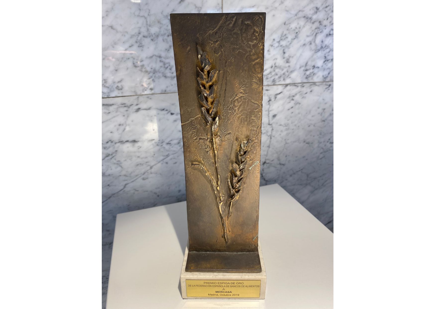 Premio Espiga de Oro 2019 de la Federación Española de Banco de Alimentos (FESBAL) por nuestra ayuda y contribución a la actividad solidaria de los diferentes bancos de alimentos.