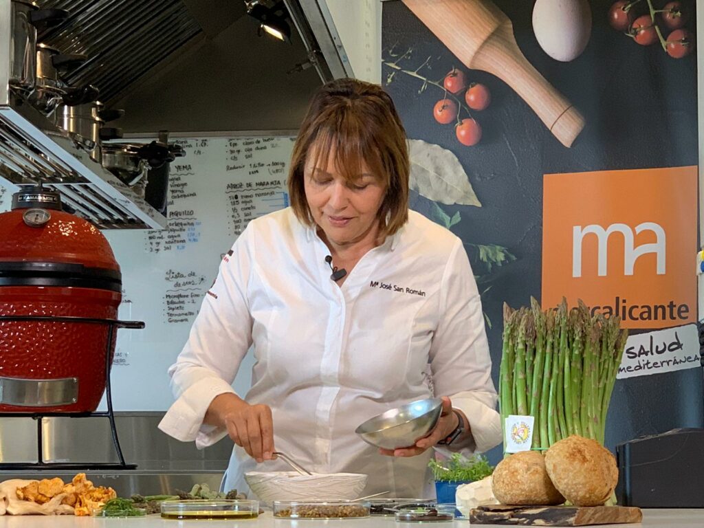 La chef y restauradora María José San Román, galardonada con 1 estrella Michelín y 2 soles Repsol, aporta su experiencia y su pasión por los alimentos frescos españoles más emblemáticos en las dos recetas elaboradas para Recetas GastroMerca, con productos de temporada procedentes de Mercalicante.